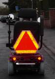 Seit 2002 dürfen Krankenfahrstühle nur noch mit 15 km/h statt bisher 25 km/h und nur noch mit Elektroantrieb neu in den Verkehr gebracht werden. Gleichzeitig müssen Krankenfahrstühle, die schneller als 6 km/h sind, hinten mit einer reflektierenden Warntafel ausgerüstet sein. (Abb. rechts) Bereits seit 1999 dürfen Krankenfahrstühle nur noch einem Sitzplatz haben. Ältere, noch 2-sitzige Krankenfahrstühle dürfen heute nur noch übergangsweise von Behinderten ohne Führerschein gefahren werden.