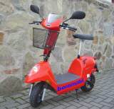 Elektroroller FC20, 20 km/hVorderrad und Hinterrad gefedert.Bequemer, höhenverstellbarer Komfortsattel.Einfachstbedienung dank "Daumen-Gashebel" (kein gewöhnungsbedürftiger Drehgriff).Starker 450 W-Motor.2 große 12V / 26 Ah-Batterien.Reichweite 30 km.Transportmöglichkeit durch herunterklappbaren Lenker und einschiebbare Sattelstütze.Unser Qualitäts-Elektroroller hat selbstverständlich die Straßenzulassung und darf in Deutschland ohne Helm gefahren werden.